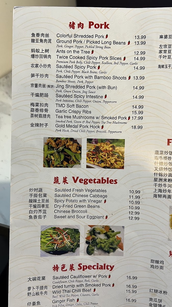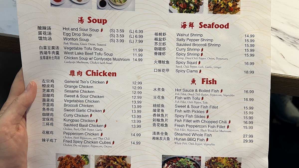 Guests can expect approachable options such as Egg Drop Soup and Hot and Sour Soup to start, alongside heartier offerings like Sautéed Cumin Beef or Orange Chicken for a warm, satisfying lunch or dinner. Seafood choices like Sweet & Sour Fish Fillet or Salt and Pepper Shrimp add fresh, lively touches, while specialties such as Mapo Tofu and Dry-Fried Green Beans bring in authentic, spicy notes that complement the restaurant’s casual atmosphere.
